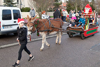 Le Père Noël a convié les enfants ravis pour un petit tour de traîneau en sa compagnie, tandis que leurs parents les attendaient en dégustant vin chaud ou jus de pomme chaud préparé par les bénévoles du comité. Et bien sûr les traditionnelles papillotes étaient de la fête.